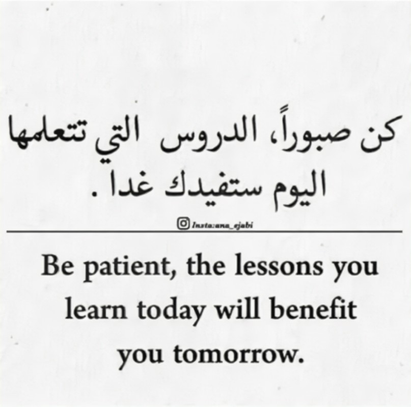 الصبر هو مفتاح الحياة. كل شيء يأتي في الوقت المناسب، لذلك لا تستسلم أبدًا. تستغرق الأشياء العظيمة بعض الوقت، ولكن إذا ثابرت ولديك أمل، فستحقق أهدافك في النهاية. كن صبوراً بما يكفي لتنتظر البركات التي تستحقها ؛ لا تستسلم أبدًا وسوف تسير الأمور في النهاية لصالحك.