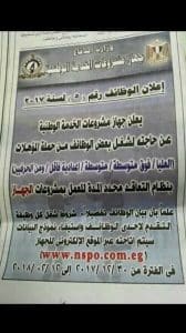 للتقديم على الوظيفه يرجى زياره الموقع   www.nspo.com.eg